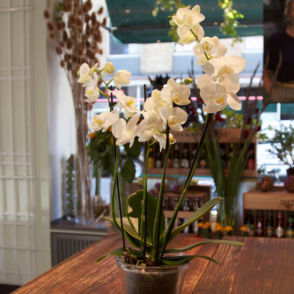 Orchid plant in glass.