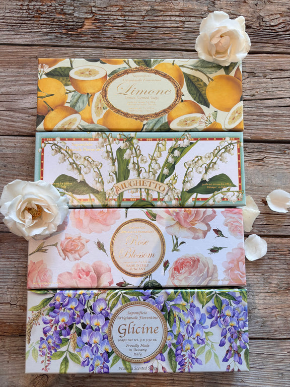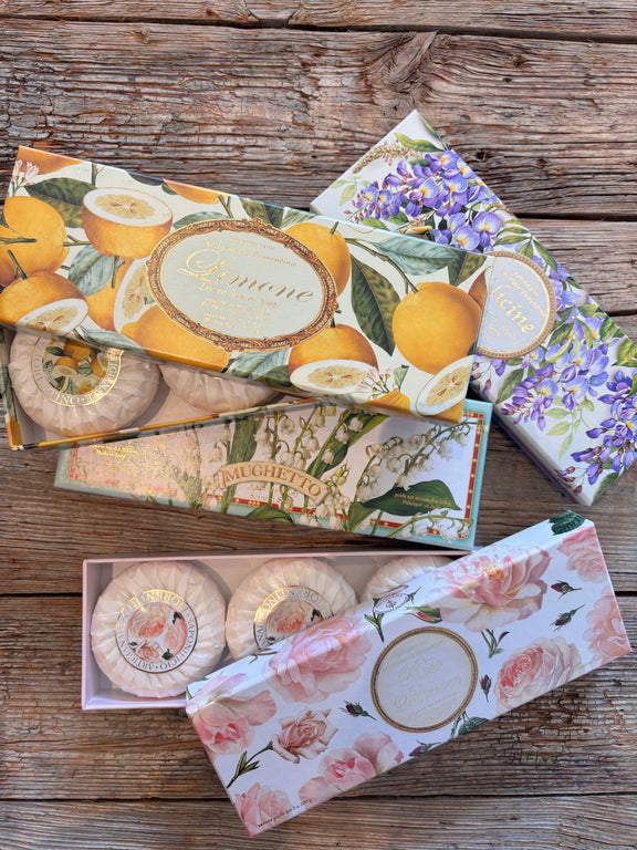 Luxurious hand soap. Packed 3 pcs. in a box. The soap is produced in Tuscany, Italy.