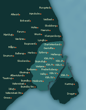 Levering i Storkøbenhavn - 130 kr. (mørkegrønt område på kortet)