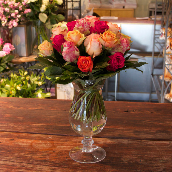 Buket med blandede Ecuador roser med grønt. Der kan vælges andre farver.
