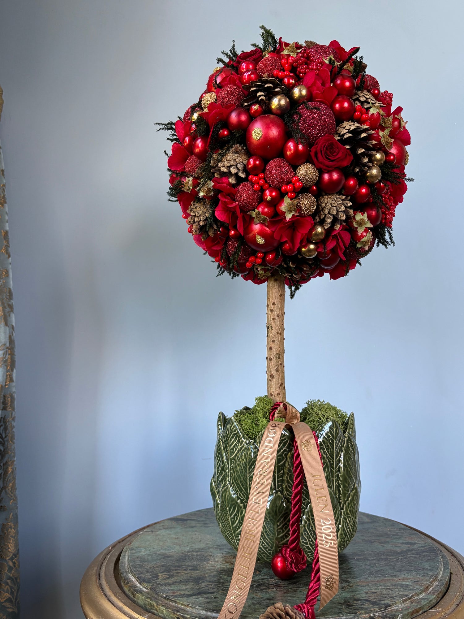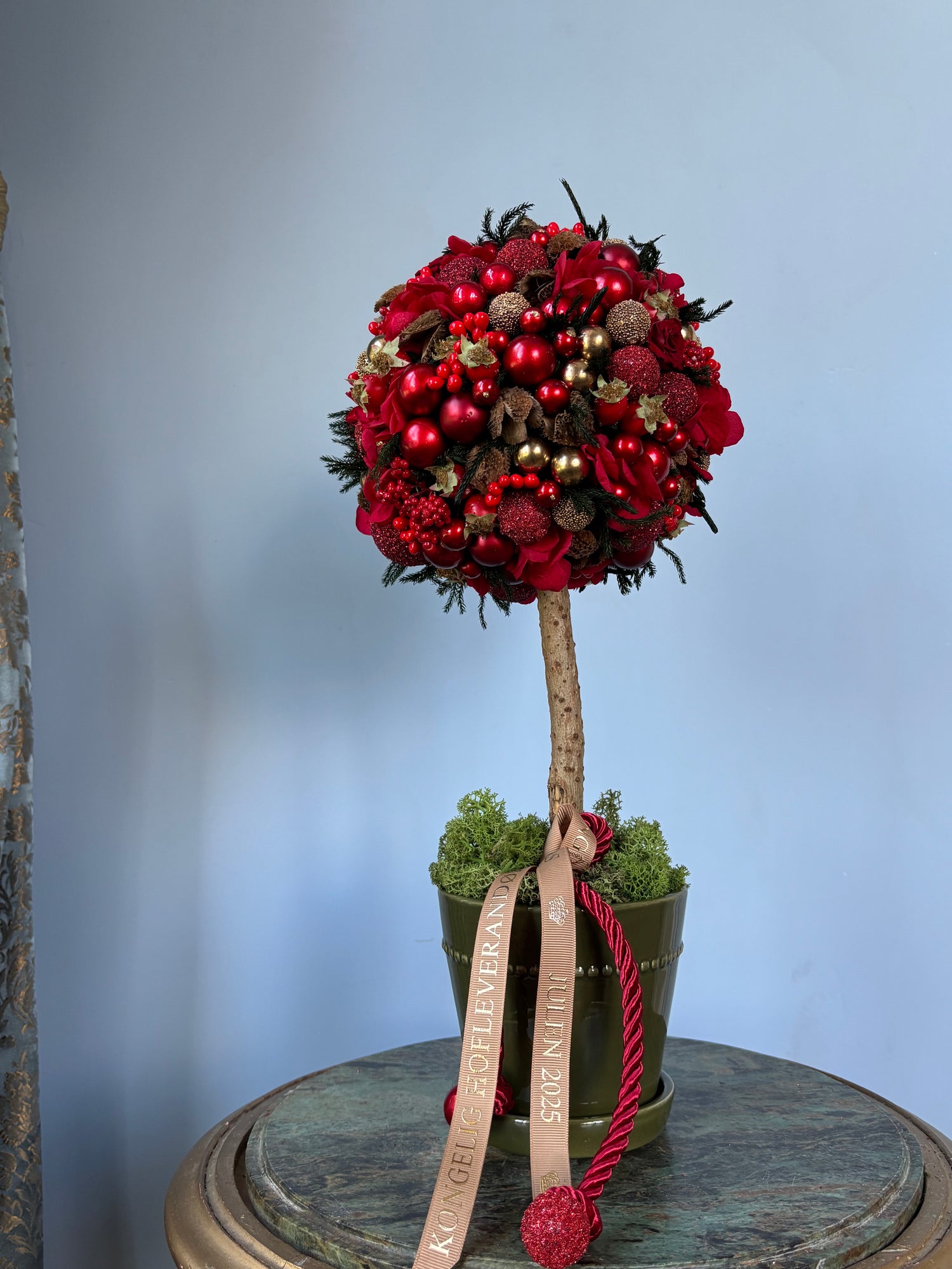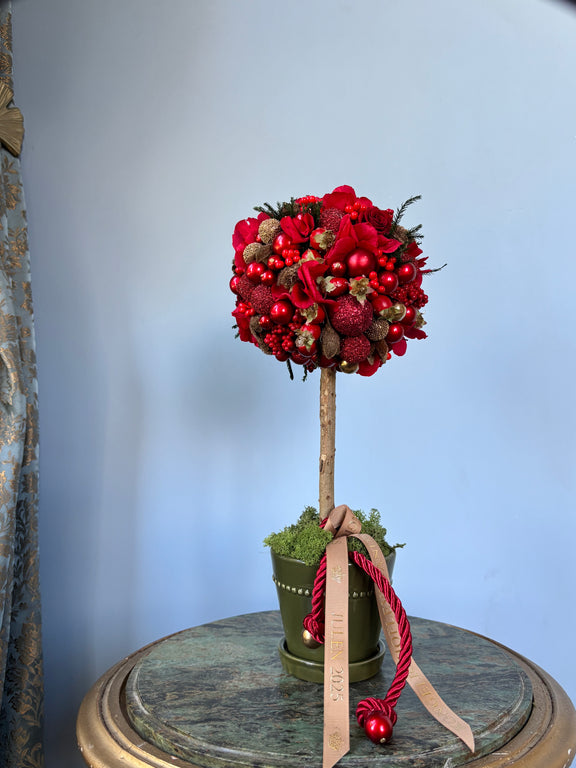 Klassisk bering julerøde træer. Julen 2025 byder på mange forskellige julekugler. I år har vi lavet træer med perfekt rund trækrone i den klassiske røde julefarve.