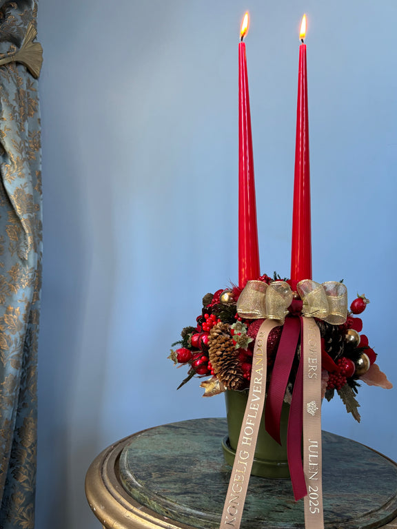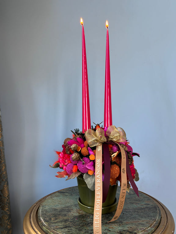 Håndlavet Bering lysdekoration i flot potte med 2 lys