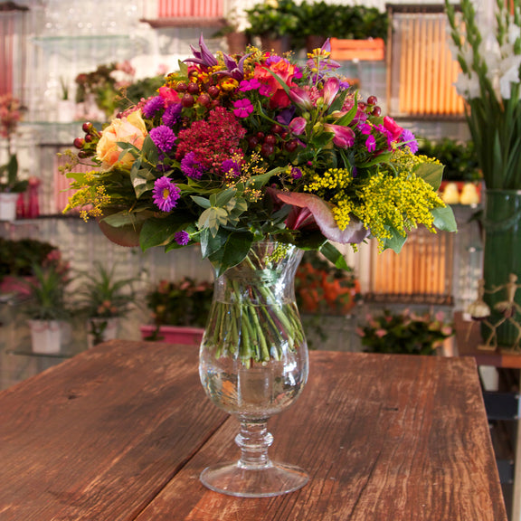 Klassisk Bering buket i stærke farver, der skaber glæde og god stemning.