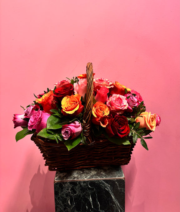 Den viste kurv koster 1200 kr. Obs. Hvis du ønsker en rød rosenkurv, så skal du forvente at prisen er 1500kr for denne kurv grundet valentinsdag.